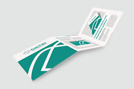 Falzflyer im Format 120 x 120 mm. 6-seitig, Zickzackfalz.